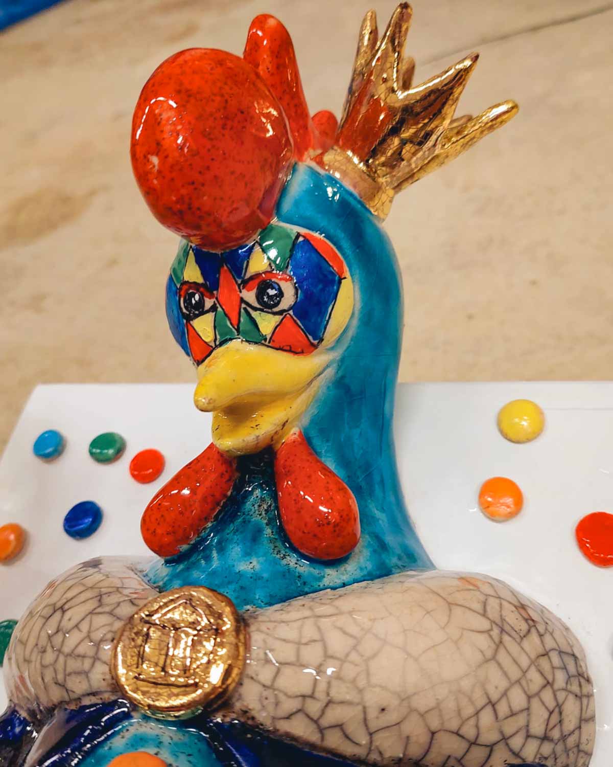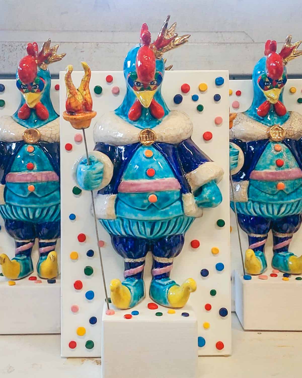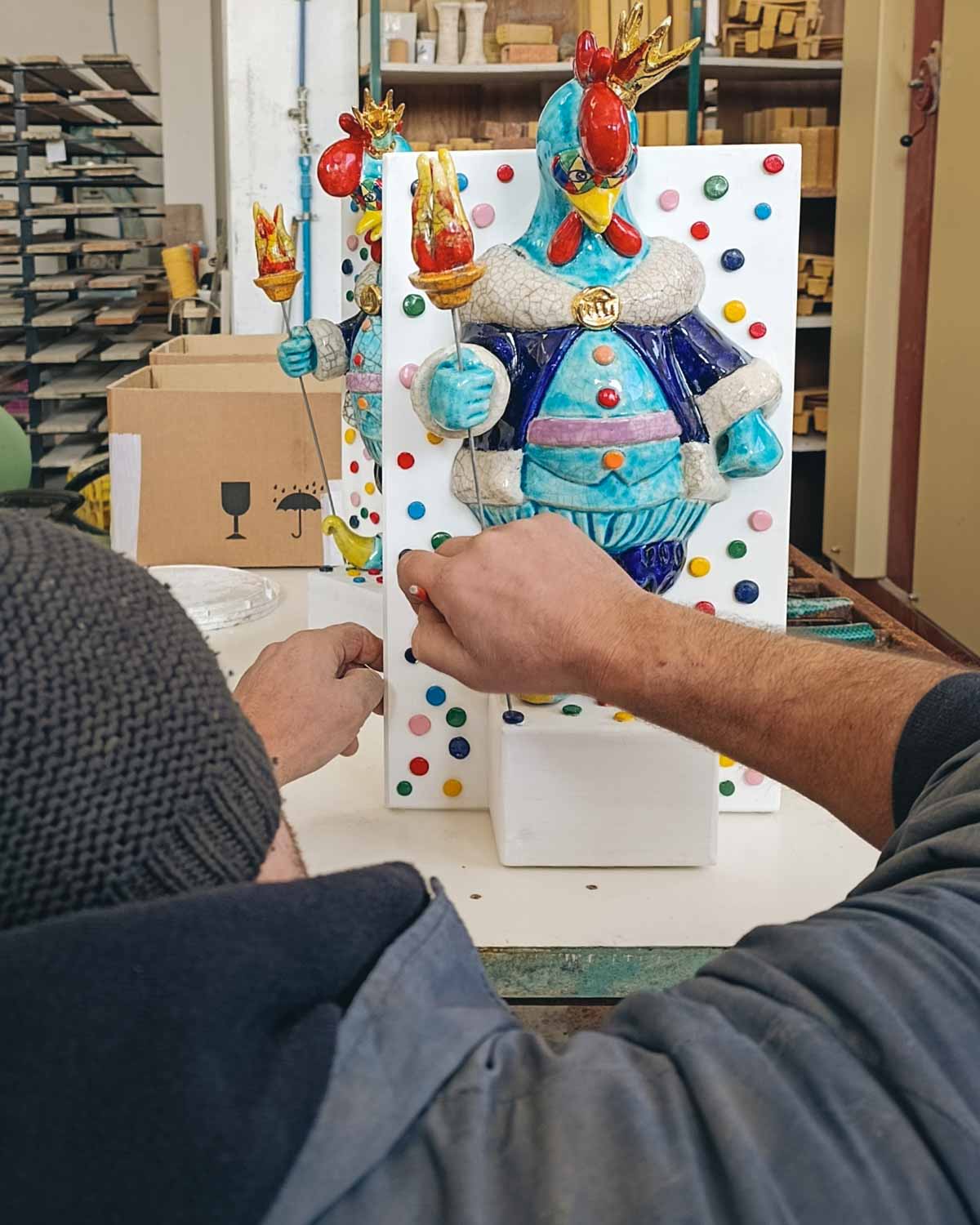 Il Carnevale di Tempio Pausania è un evento iconico della tradizione sarda, caratterizzato da colori, allegria e spettacoli straordinari. Quest'anno, l'organizzazione ha scelto di premiare i vincitori con un trofeo d'eccezione, realizzato nel nostro laboratorio di Artigianato Pasella. Una scultura in ceramica che celebra il Gallo Frisjola, mascotte ufficiale del Carnevale, simbolo di festa e tradizione.