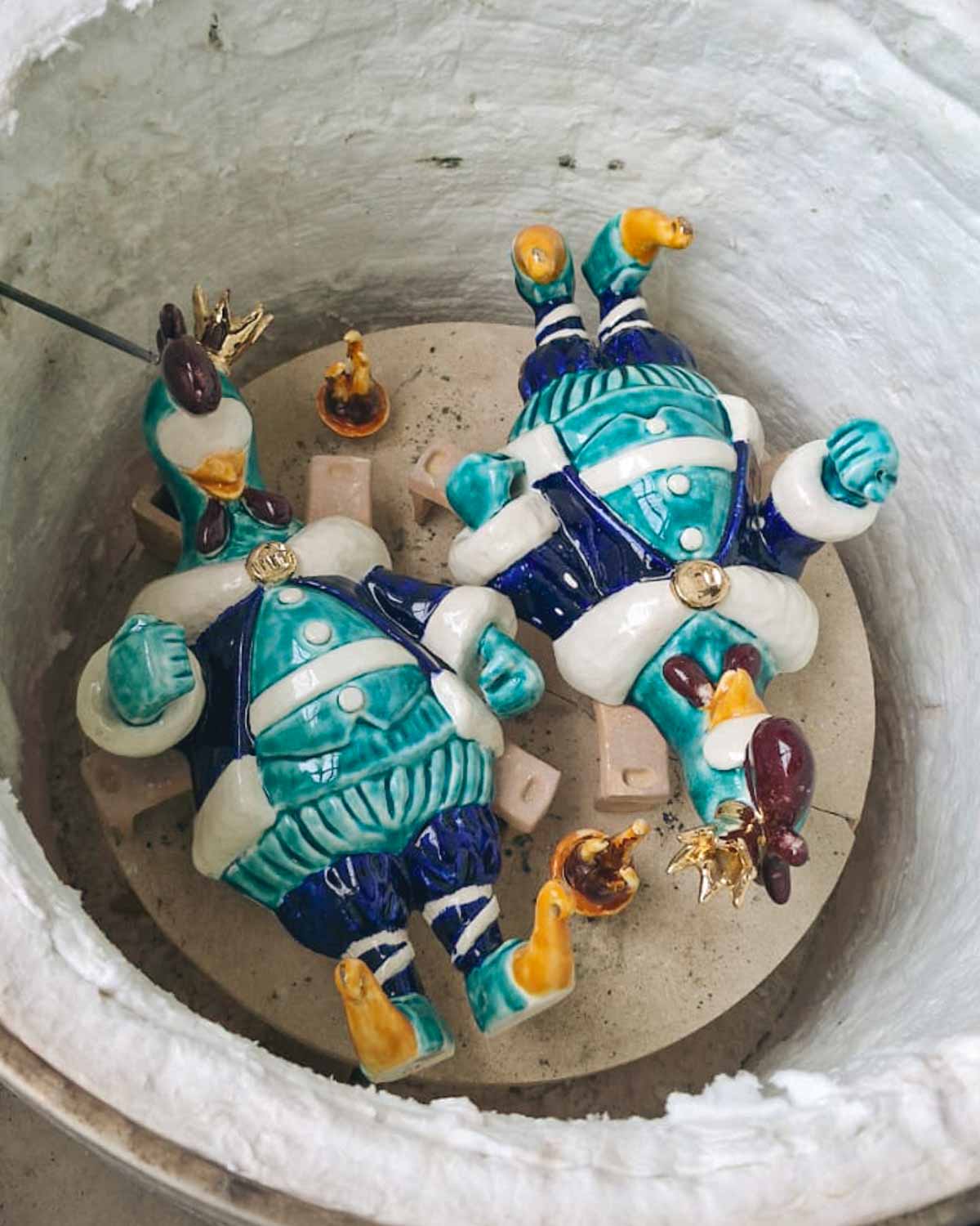 Per impreziosire ulteriormente il trofeo, abbiamo applicato dettagli in oro zecchino, una finitura preziosa che aggiunge brillantezza ed eleganza alla scultura. L'oro zecchino è da sempre un simbolo di raffinatezza e prestigio nell'arte della ceramica, utilizzato per esaltare particolari e conferire un senso di esclusività all'opera.