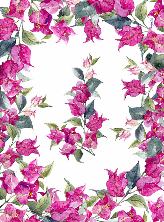 tovaglie con grafiche fruttate o naturali, con motivi come fiori di mela cotogna, cactus e dettagli esotici;