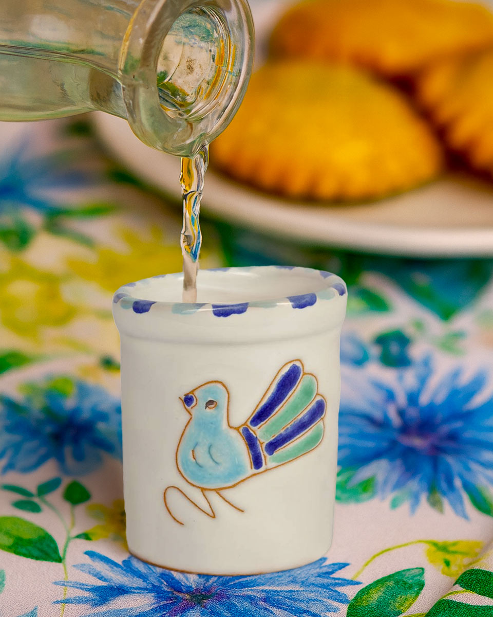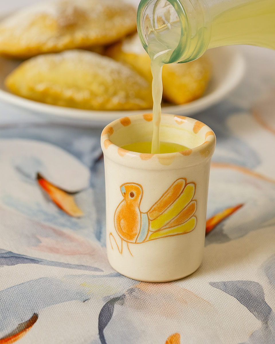 Bicchierino da Liquore in Ceramica con motivo Pavoncella Bianca