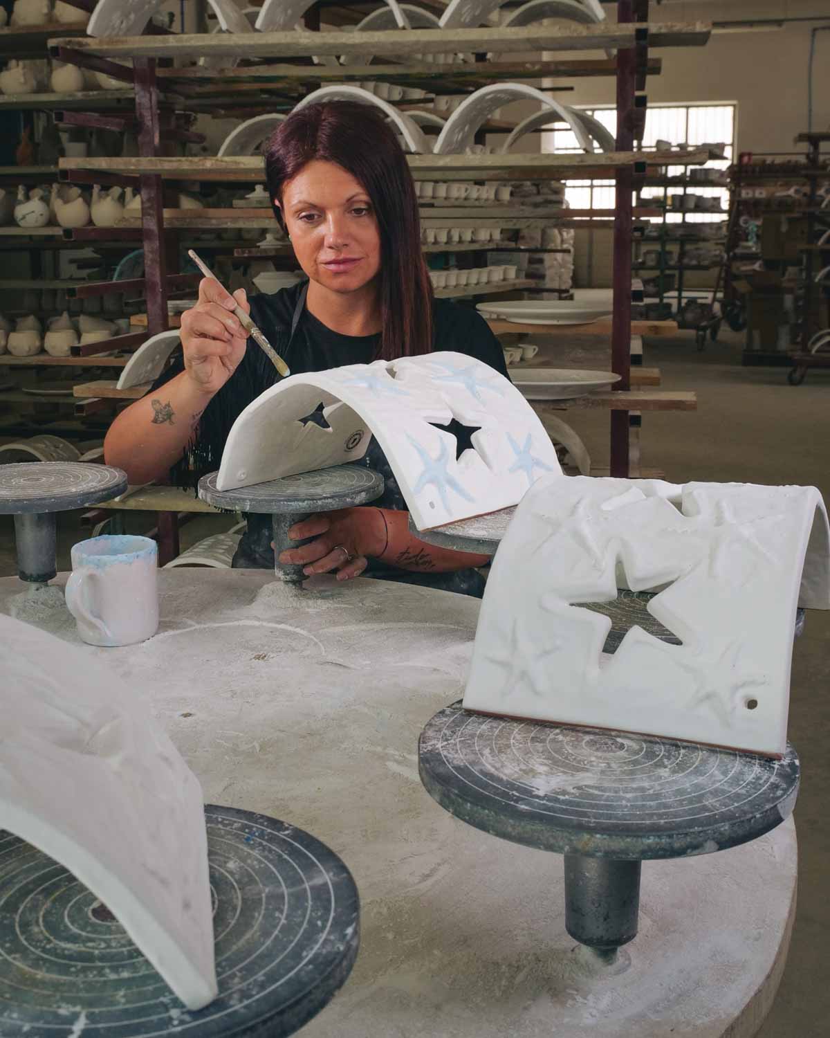 Le nostre applique in ceramica sono interamente realizzate a mano nel laboratorio di Calangianus, in Sardegna, dove tradizione e creatività si fondono per dare vita a oggetti unici. Ogni pezzo nasce da un processo artigianale che valorizza la materia prima e la trasforma in un complemento d’arredo capace di coniugare funzionalità e bellezza.