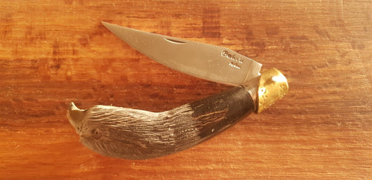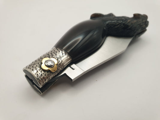 Coltello scultura cinghiale, manico bufalo, 23 cm