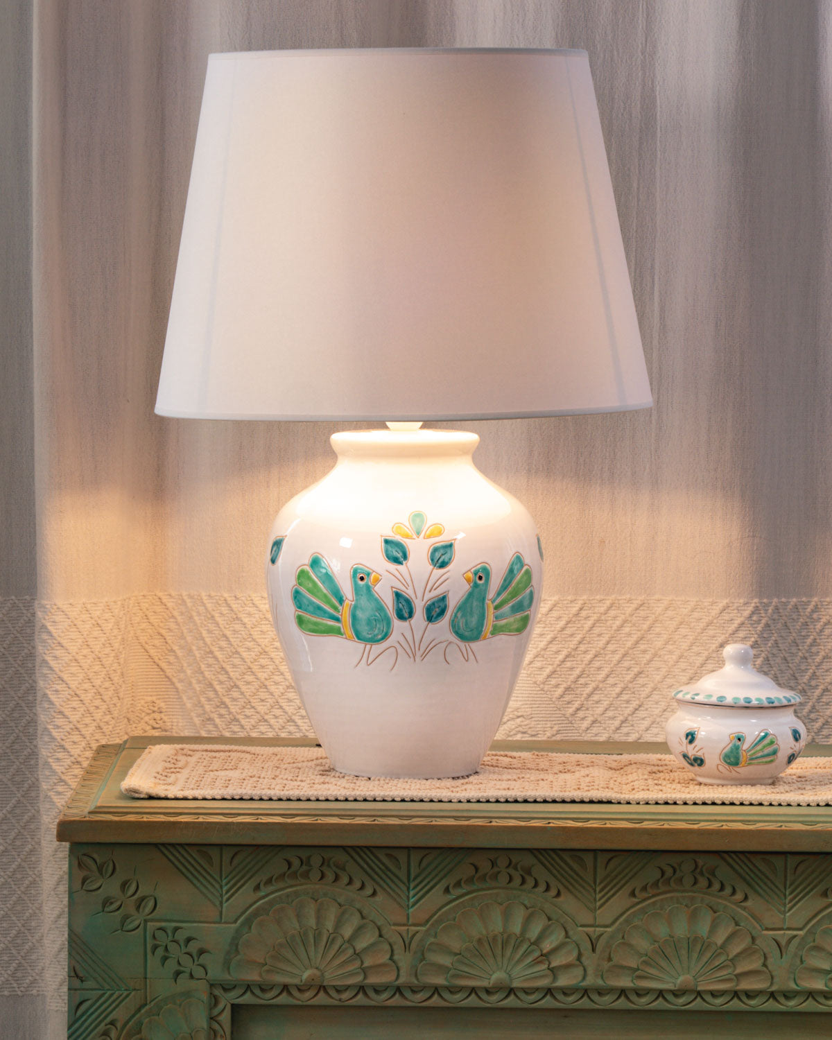Base lampada con motivo pavoncella turchese, altezza 20 cm