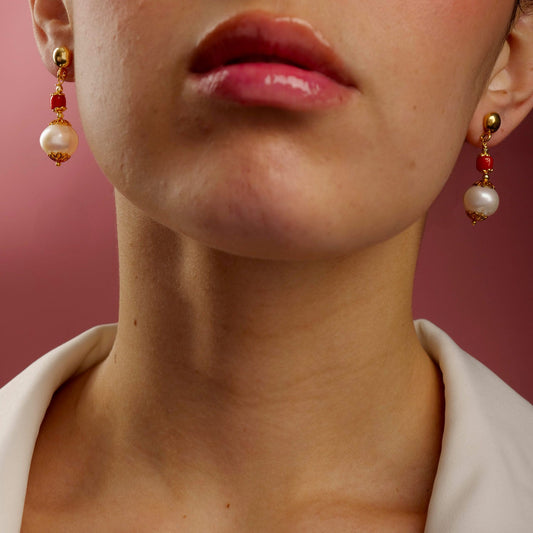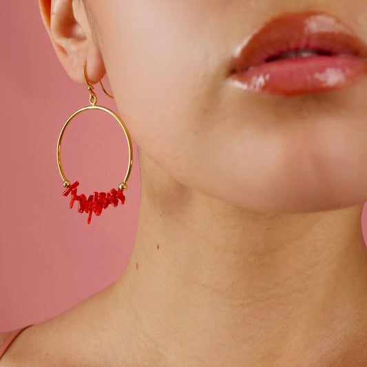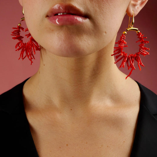 Orecchini a lobo in filigrana con pietra di corallo rosso