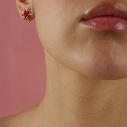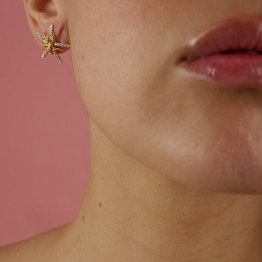 Orecchini Artigianali in Argento a Forma di Stella Marina Bicolore