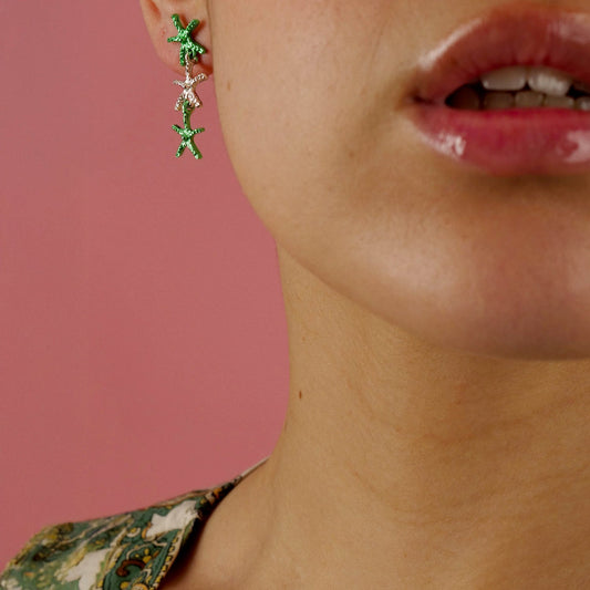 Orecchini Artigianali in Argento con Stelle Marine Verdi