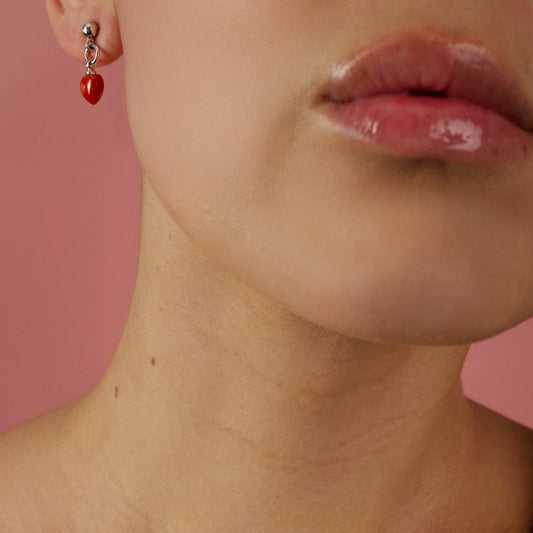 Orecchini a Lobo in Argento con Cuore in Corallo