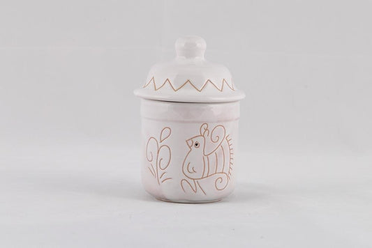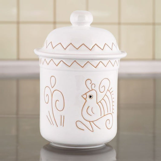 Barattolo con Coperchio in Ceramica con motivo Pavoncella Bianca