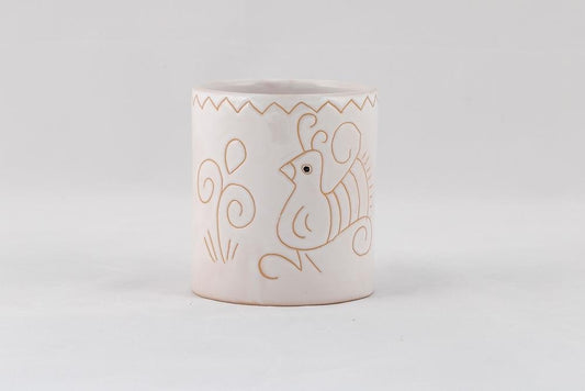 Bicchiere in Ceramica con motivo Pavoncella Bianca