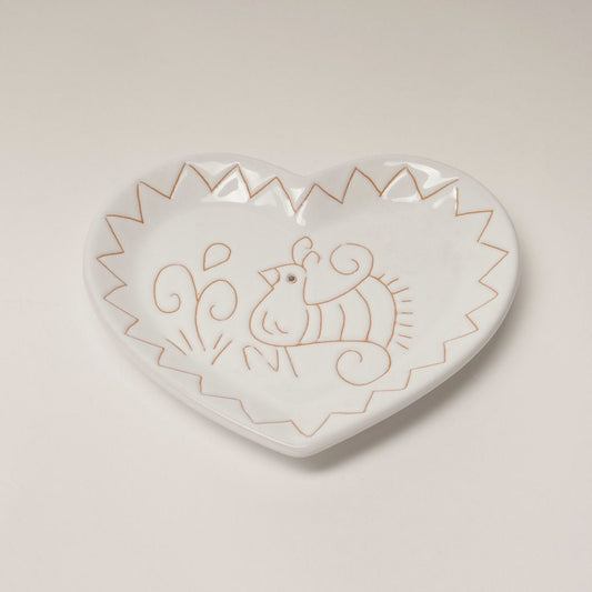 Piatto Piano in Ceramica con motivo Pavoncella Bianca