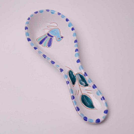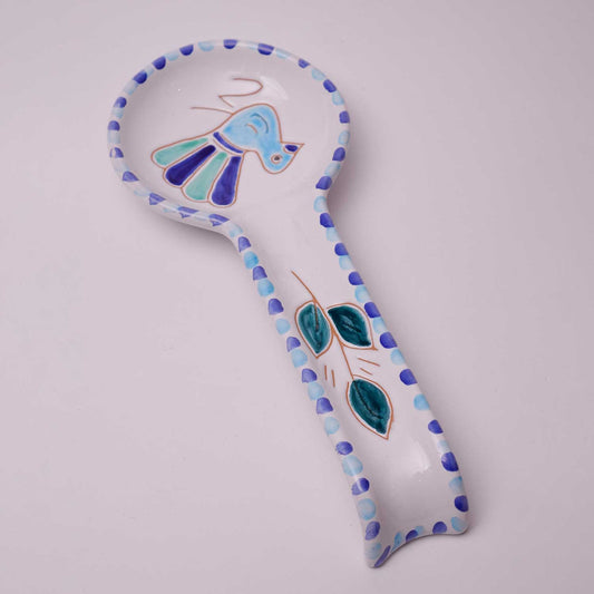 Poggia-mestolo ovale con motivo pavoncella turchese