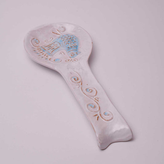 Poggia-mestolo rotondo con motivo pavoncella turchese in rilievo