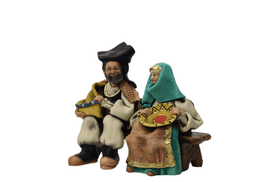 Coppia di Anziani in Costume - Tradizione Sarda in Ceramica, 17 cm