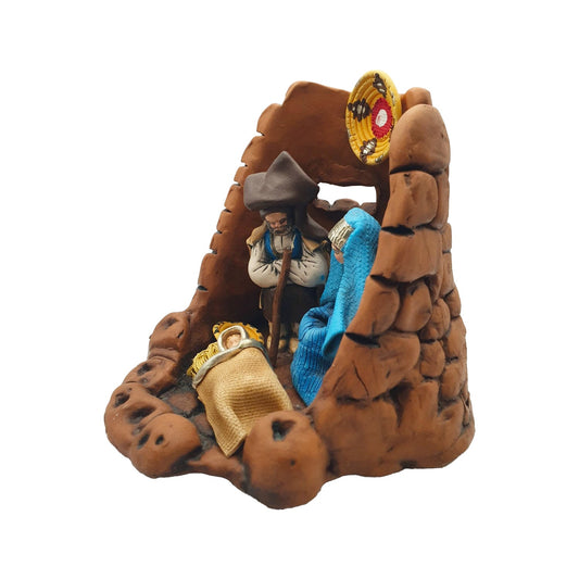 Presepe in ceramica sarda con nuraghe, smalto lucido, cm 6