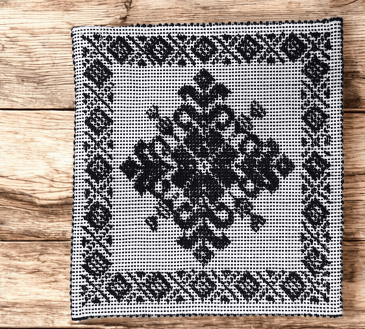 Tappetino- centrino sardo, cotone, lavorazione meccanica, decorazione giglio nero, 35x35 cm