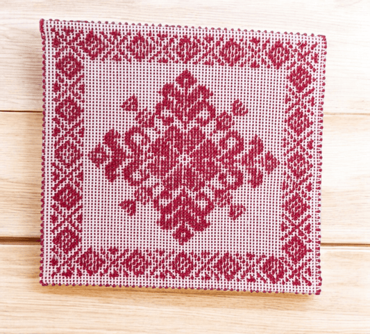 Tappetino- centrino sardo, cotone, lavorazione meccanica, decorazione giglio rossoo, 35x35 cm