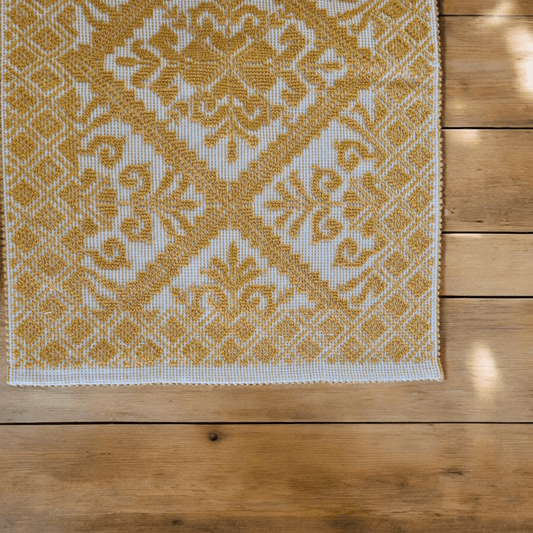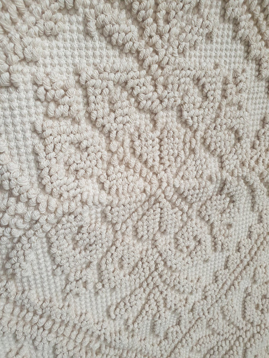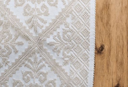 Tappeto sardo, lavorazione meccanica, cotone, giglio ecru e bianco, 50x80 cm