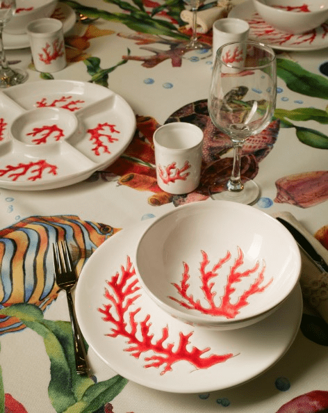 Decorata finemente in rosso, blu e turchese, un chiaro richiamo ai fondali...