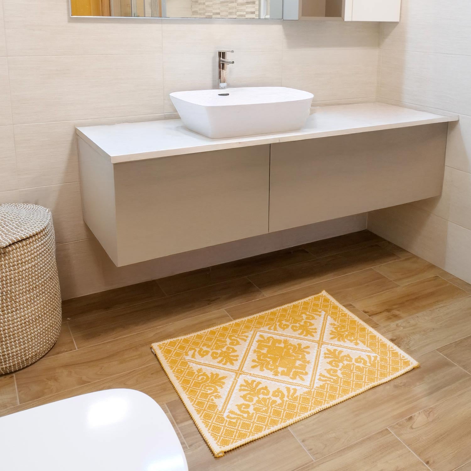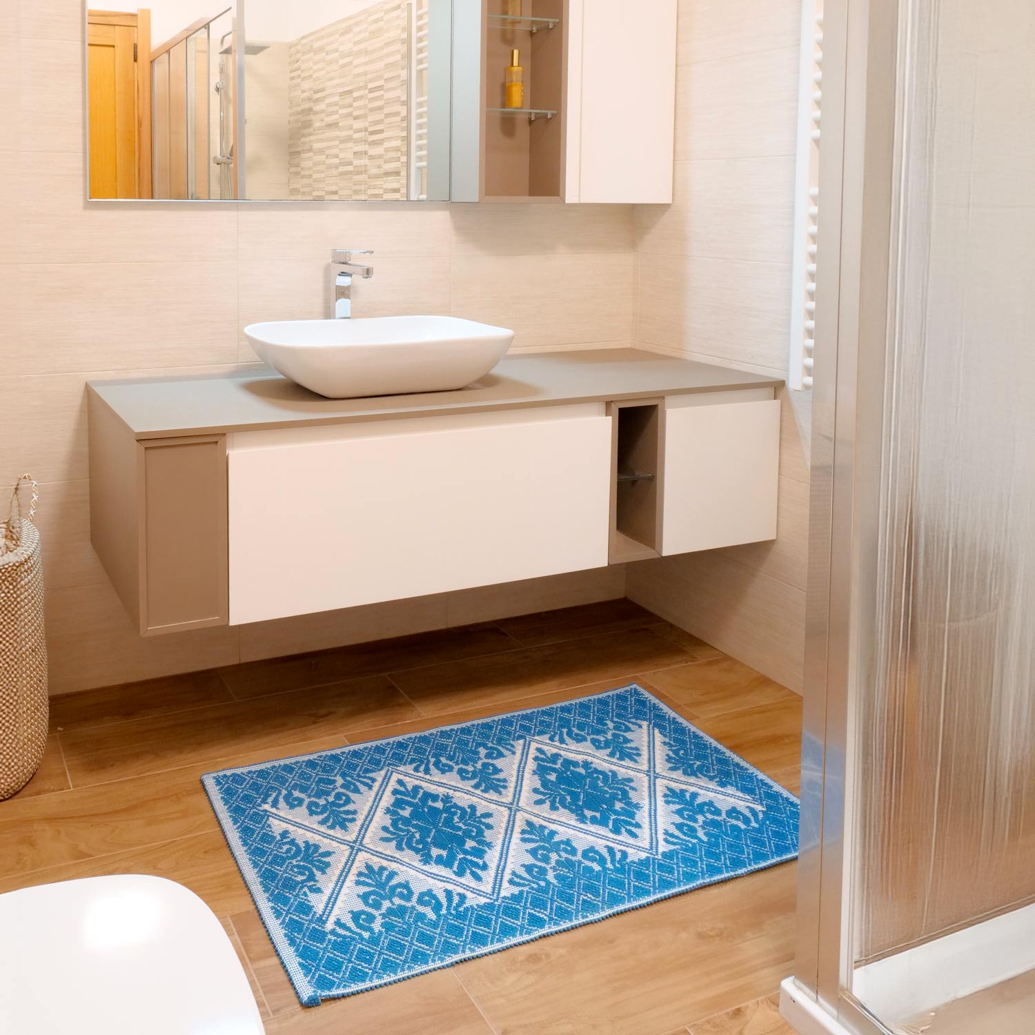 I tappeti, invece, sono disponibili in diverse varianti cromatiche pensate per valorizzare stili differenti. Puoi scegliere tonalità neutre per un effetto elegante e rilassante, oppure colori più intensi e vivaci per creare contrasti e punti focali. Grazie a questa varietà, ogni tappeto può diventare un elemento chiave per definire l’atmosfera del bagno, sia che si abbini alle pareti, al pavimento o agli accessori.